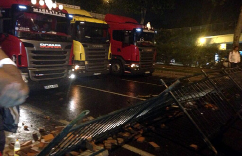 Οδηγοί φορτηγών «φρουρούν» τα οδοφράγματα για να εμποδίσουν τα οχήματα της αστυνομίας