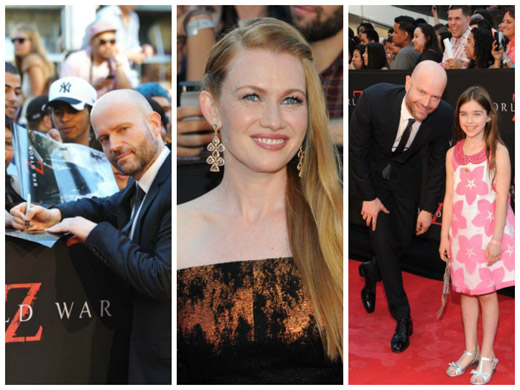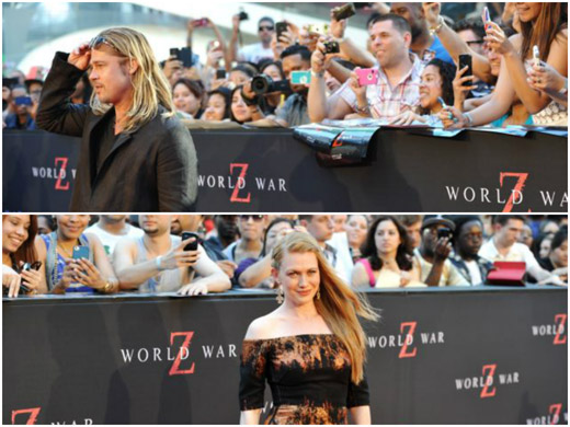 Το κόκκινο χαλί, σε σχήμα Ζ, που στήθηκε από την παραγωγή για την πρεμιέρα της πολύ-αναμενόμενης ταινίας για τα ζόμπι Παγκόσμιος Πόλεμος Ζ, φιλοξένησε για αρκετή ώρα τον λαλίστατο πρωταγωνιστή της, Μπραντ Πιτ, ο οποίος απαντούσε σε ερωτήσεις δημοσιογράφων, διακόπτοντας συνεχώς προκειμένου να ικανοποιήσει τους θαυμαστές του, που στριμώχνονταν και φώναζαν δυνατά ζητώντας αυτόγραφα και αναμνηστικές φωτογραφίες!