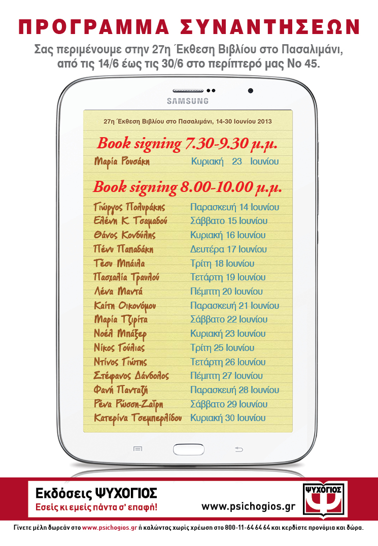 Την 27η Έκθεση Βιβλίου 2013 στο Πασαλιμάνι διοργανώνει ο Σύλλογος Βιβλιοχαρτοπωλών και Εκδοτών Πειραιά… Follow @ingrBook!function(d,s,id){var js,fjs=d.getElementsByTagName(s)[0];if(!d.getElementById(id)){js=d.createElement(s);js.id=id;js.src=»//platform.twitter.com/widgets.js»;fjs.parentNode.insertBefore(js,fjs);}}(document,»script»,»twitter-wjs»); …ενώ στην οργάνωση της έκθεσης συμμετέχει και ο Δήμος Πειραιά με περίπτερο που ο επισκέπτης μπορεί να πάρει χρηστικές πληροφορίες για το δήμο, τουριστικούς οδηγούς για την πόλη και το καλλιτεχνικό πρόγραμμα του καλοκαιριού στο «Βεάκειο» Θέατρο. Τα […]