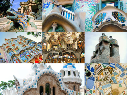 Κάποια από τα πιο χαρακτηριστικά έργα του είναι: LA SAGRADA FAMILIA H εκκλησία «Sagrada Familia» -τουριστικό μνημείο σύμβολο της Βαρκελώνης- είναι το τελευταίο και ένα από τα χαρακτηριστικά έργα του που ξεκίνησε το 1883. Το μεγάλο όνειρο του Γκαουντί στο οποίο αφιερώθηκε ολοκληρωτικά, περνώντας 15 χρόνια ζώντας και δουλεύοντας εκεί για την αποπεράτωσή της. Δυστυχώς, πέθανε το 1926 και δεν πρόλαβε να δει το έργο της ζωής του να ολοκληρώνεται. CASA BATLLO με το χαρακτηριστικό δράκο στη σκεπή του! CASA MILA (La Pedrera). Η φημισμένη πολυκατοικία με τη διάσημη σκεπή με τις καμινάδες «τους πολεμιστές του δάσους». PARC GUELL ένα ιδιαίτερο φανταστικό πάρκο με καταπληκτική θέα στην πόλη.