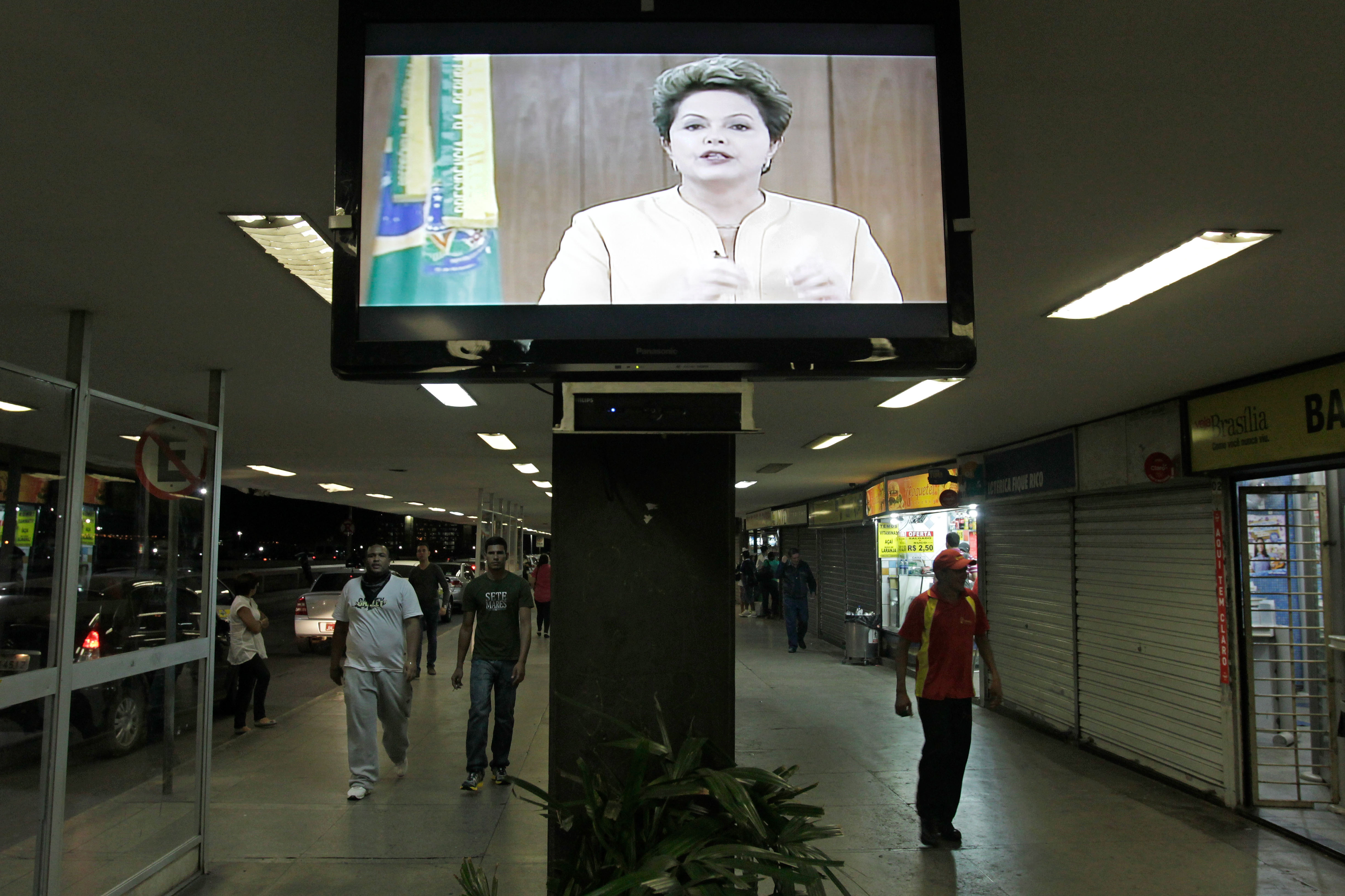 Διάλογο, μεταρρυθμίσεις και περισσότερα κονδύλια σε παιδεία και υγεία υποσχέθηκε η πρόεδρος της Βραζιλίας σε μια προσπάθεια να σβήσει η φωτιά των διαδηλώσεων στις μεγαλύτερες πόλεις της χώρας. Στο τηλεοπτικό της διάγγελμα, η Ρουσέφ έτεινε χείρα φιλίας στους διαδηλωτές, αλλά προειδοποίησε ότι η τάξη θα τηρηθεί. «Είμαι πρόεδρος και αυτών που διαδηλώνουν, αλλά και αυτών που δεν διαδηλώνουν» είπε χαρακτηριστικά.