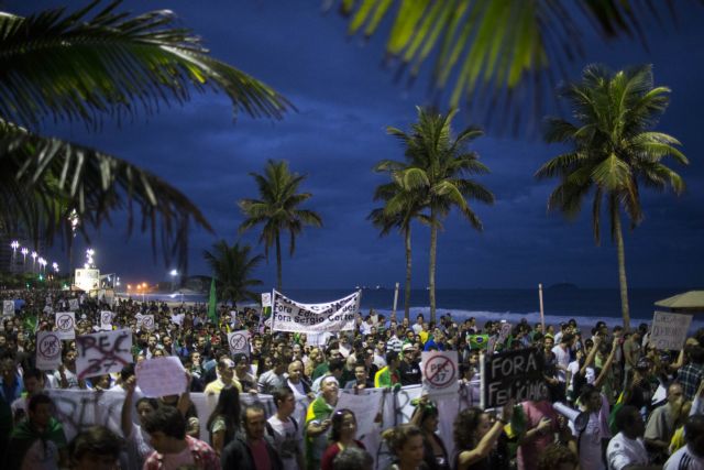 Μετά από μία εβδομάδα τεράστιων διαδηλώσεων και βραδυνής έντασης στις μεγαλύτερες πόλεις της Βραζιλίας, η χώρα έκανε ένα «διάλειμμα» την Κυριακή -χωρίς όμως να υποχωρεί αισθητά η δυσφορία και οι διαμαρτυρίες για τη διαφθορά. Χιλιάδες κόσμου βγήκαν ξανά στο Ρίο ντε Ζανέιρο, εκατοντάδες στη Φορταλέζα, αλλά δεν αναφέρθηκαν συγκρούσεις με τις αστυνομικές δυνάμεις.
