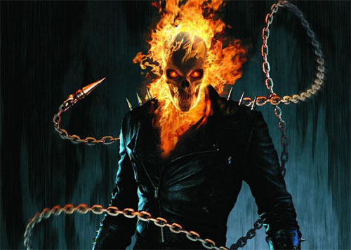 Στις αρχές της δεκαετίας του 1950 το γνωστό τραγούδι «(Ghost) Riders in the Sky» έγινε αφορμή για τη δημιουργία ενός γουέστερν κόμικς, με ήρωα τον Ghost Rider, ένα μασκοφόρο καβαλάρη. Η λογοκρισία που επιβλήθηκε και στα περιοδικά με σκίτσα οδήγησε το χάρτινο ήρωα στην αφάνεια. Δώδεκα χρόνια αργότερα ο Ghost Rider επανέκαμψε. Δεν καβαλούσε πλέον άλογο, αλλά μοτοσικλέτα. Στην πορεία εξελίχθηκε σε μια φλεγόμενη νεκροκεφαλή πάνω σε πύρινη μηχανή. Σε αυτή την κατάσταση τον παρέλαβε ο σκηνοθέτης του «Daredevil» και δημιούργησε μια ταινία, που προβλέπεται να τιμηθεί δεόντως στα Χρυσά Βατόμουρα. Το concept δεν είναι κακό: Ένας άντρας που έχει πουλήσει την ψυχή του στο διάβολο αντιμετωπίζει τέσσερις δαίμονες και παράλληλα προσπαθεί να «σπάσει» το συμβόλαιο με το Σατανά.