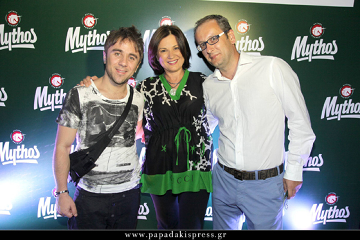 Η Κάλλια Μυλωνάκη Account Manager της V+O, ο Γιώργης Λαμπαθάκης και η Αθανασία Μώλου Brand Manager της Mythos απήλαυσαν το καλοκαιρινό πάρτι της μπίρας Mythos.