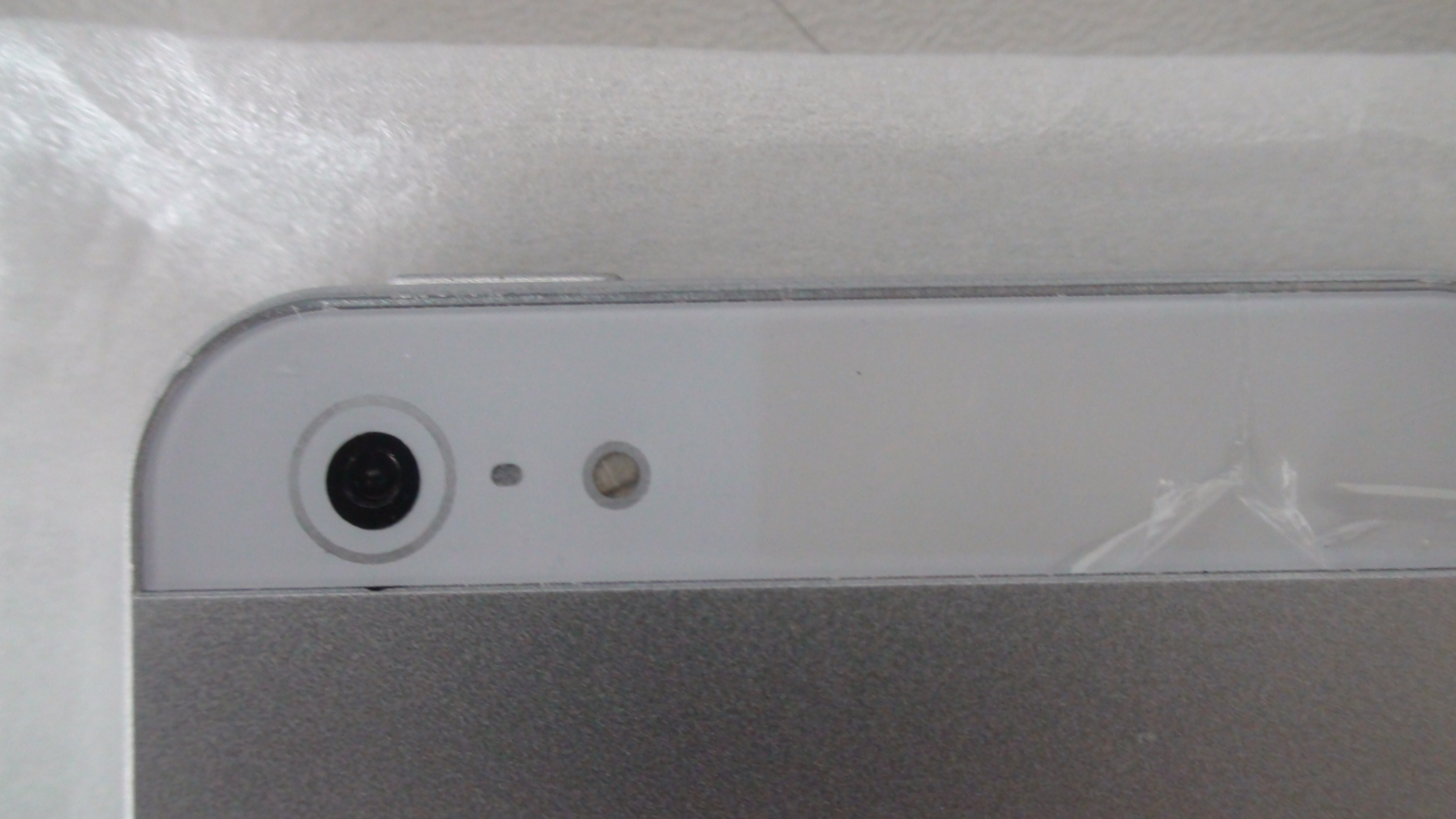Μπροστά, στο επάνω μέρος θα έπρεπε να υπάρχει η κάμερα Facetime στο κέντρο και από κάτω ο δέκτης/μπροστινό μικρόφωνο. Στο iPhone 5 μαϊμού, υπήρχε ένα ακόμα… κυκλάκι δίπλα στο μπροστινό μικρόφωνο. Στην συσκευασία θα βρείτε το εργαλείο εξαγωγής SIM (δεν θα σας άφηναν να ψάχνετε συνδετήρα) και δεν θα διακρίνετε μονομιάς ότι δεν είναι το αυθεντικό. Εάν επιχειρήσετε να εξάγετε με αυτό την υποδοχή της κάρτας, θα διαπιστώσετε πέρα από κάθε αμφιβολία ότι στο εσωτερικό του, το ολοκαίνουργιο iPhone 5 σας δεν θα μπορούσε να είναι άδειο, δεν υπάρχει παρά χαραγμένο μόνο το περίγραμμα από το συρταράκι της κάρτας.