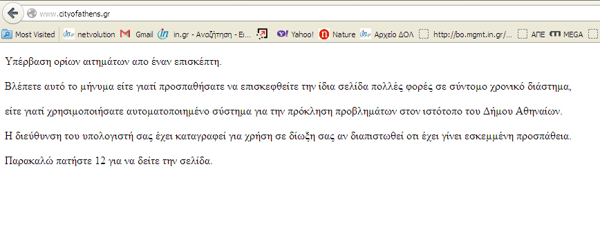Μια μάλλον αυστηρή προειδοποίηση εμφανίζεται στην οθόνη όταν ο χρήστης προσπαθήσει επανειλημμένα να συνδεθεί στο δικτυακό τόπο του Δήμου Αθηναίων.