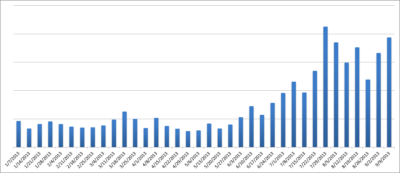 Σύμφωνα με το ESET LiveGrid, το σύστημα που συλλέγει στατιστικά δεδομένα για malware μέσω cloud της ESET, ο εβδομαδιαίος αριθμός μολύνσεων από το Win32/Filecoder παρουσιάζεται από τον Ιούλιο του 2013 αυξημένος πάνω από 200% συγκριτικά με το μέσο αριθμό που έχει καταγραφεί κατά το διάστημα Ιανουαρίου – Ιουνίου 2013.