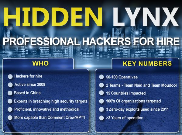 Τον χειρότερο εφιάλτη των υπεύθυνων ασφαλείας πληροφοριακών συστημάτων σε κυβερνητικές υπηρεσίες και την βιομηχανία περιγράφει το τμήμα Security Response της Symantec. Υπάρχει μια ομάδα χάκερ που αποτελείται από 50 έως 100 άρτια καταρτισμένους, επίμονους, οργανωτικούς, υπομονετικούς και ευέλικτους ανθρώπους που αναλαμβάνουν να διεισδύσουν και να υποκλέψουν πολύτιμα στοιχεία σε εκείνους που μπορούν να τους αποζημιώσουν για να αποκτήσουν στρατηγικό πλεονέκτημα. Είναι οι Hidden Lynx, λέει η Symantec.