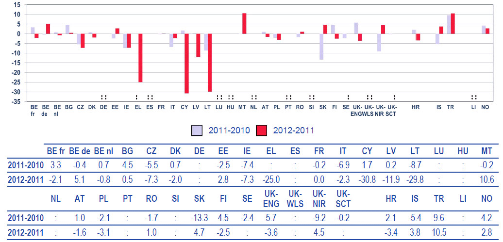 Σύμφωνα λοιπόν με τη μελέτη αυτή, κατά το 2012 «η πιο μεγάλη μείωση των εκπαιδευτικών δαπανών πραγματοποιήθηκε στις περιπτώσεις της Κύπρου, της Ελλάδας, της Λετονίας, της Λιθουανίας και του Ην. Βασιλείου«.