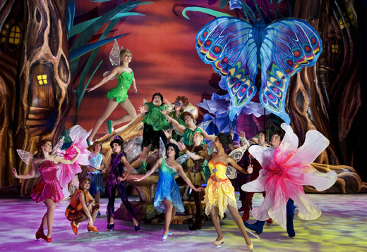 Κοράλια και κοχύλια σε φλούο χρώματα ζωντανεύουν τον κόσμο της Άριελ στη Μικρή Γοργόνα, ενώ το κοινό παρασύρεται στην πολύχρωμη φανταστική γη με τις νεράιδες για τη συνάντηση με την Τίνκερ Μπελ.