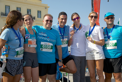 Γιώργος Τσαπρούνης, Διευθυντής Εταιρικών Σχέσεων WIND, Γιώργος Ράλλης, Γενικός Οικονομικός Διευθυντής WIND, Ειρήνη Αναστασιάδου, Corporate Affairs Υπεύθυνη Εταιρικών Σχέσεων WIND, Χριστίνα Κοραή, Γραφείο Τύπου WIND, Μαρίνα Κουταρέλη, Πρόεδρος Οργανωτικής Επιτροπής SPETSES MINI MARATHON, Μαρία Πολύζου (Μαραθωνοδρόμος) Ζέτα Δούκα και μέλη της WIND Running Team