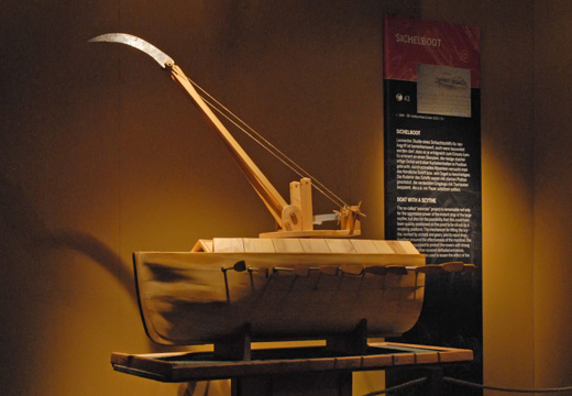 Από τα πιο εντυπωσιακά μοντέλα που παρουσιάζονται στην έκθεση είναι τα εξής: 1. Έλικας Μηχανής Πτήσεων Ένα από τα διασημότερα σχέδια του Λεονάρντο. Πρόκειται για πρόγονο του ελικοπτέρου. Ένα σκάφος κατασκευασμένο από καλάμια, λινό ύφασμα και νήματα σιδήρου, που θα χειρίζονταν τέσσερις άνδρες, οι οποίοι περιστρέφοντας έναν άξονα, θα μπορούσαν να σηκωθούν από το έδαφος. Είναι ξεκάθαρο ότι ο μηχανισμός, όπως τον σχεδίασε ο Λεονάρντο, δεν θα μπορούσε ποτέ να απογειωθεί. Όμως, αναγνωρίζεται ότι με τη δύναμη ενός επαρκούς κινητήρα, η μηχανή θα μπορούσε πραγματικά να είχε στροβιλιστεί στον αέρα. 2. Καταπέλτης Πρόκειται για μία από τις παλαιότερες πολεμικές μηχανές του κόσμου. Ο Codex Atlanticus περιέχει διάφορα προσχέδια που δείχνουν τον καταπέλτη και τις μικρές αλλά σημαντικές τροποποιήσεις που ο Λεονάρντο έκανε για να ενισχύσει τη δύναμή του. 3. Αναπνευστικός Σωλήνας Το σχέδιο του αναπνευστικού σωλήνα είναι μία μέθοδος που επιτρέπει σε κάποιον να μείνει κάτω από την επιφάνεια του νερού. Αν και η βασική ιδέα δεν ήταν καινούρια, το σχέδιο του Λεονάρντο αποτέλεσε πρόδρομο των σύγχρονων λύσεων για υποβρύχια αναπνοή. 4. Ποδήλατο Αυτό είναι ένα από τα μυστήρια που περιβάλλουν τη ζωή και το έργο του Λεονάρντο. Κατά την αποκατάσταση του Codex Atlanticus, βρέθηκαν δύο κολλημένες μεταξύ τους σελίδες, στις οποίες απεικονιζόταν το ποδήλατο. Η σχεδίαση, η έλλειψη λεπτομερειών και η υπογραφή του μαθητή του ντα Βίντσι, «Σαλάι», καταδεικνύει ότι το συγκεκριμένο σχέδιο δεν ήταν του Λεονάρντο αλλά του μαθητή του, που ίσως αντέγραψε το ποδήλατο από ένα μοντέλο που είδε στο εργαστήριο του δασκάλου του.