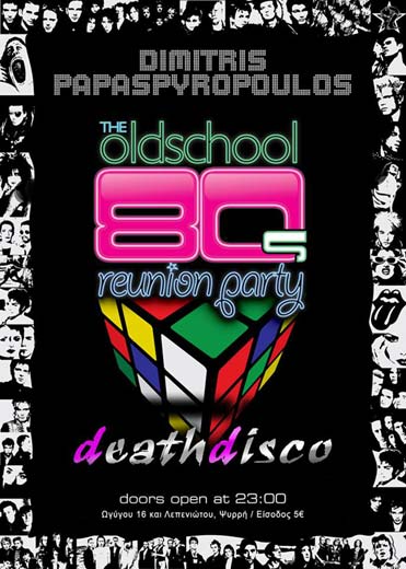 Και επειδή πολύ επιθυμήσαμε τα εν λόγω parties, χαρήκαμε πολύ που το «The Old School 80’s Reunion Party» επιστρέφει για μια και μοναδική βραδιά στο DeathDisco και θα μπορέσουμε να ξαναζήσουμε έστω και για λίγο στιγμές ανάλογες.