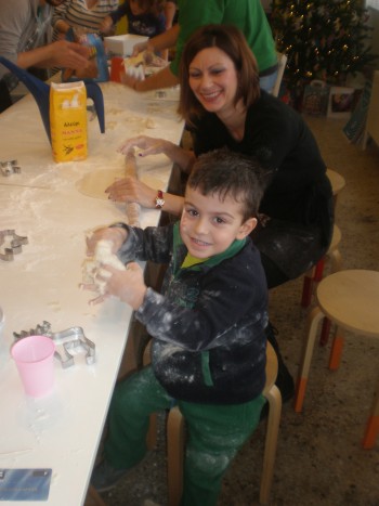 Το πρόγραμμα αναλυτικά χωρίζεται σε δύο μέρη: Κυριακή 08 Δεκεμβρίου 2013 18:00-19:00 Πλάθουμε το ζυμάρι και δημιουργούμε αυτοσχέδια στολίδια 19:00-20:00 Πλάθουμε ζυμάρι και δημιουργούμε στολίδια με κουπάτ που μοιράζει το Εργαστήρι Κυριακή 15 Δεκεμβρίου 2013 18:00-19:00 Σχεδιάζουμε τα στολίδια που έχουμε πλάσει από την προηγούμενη εβδομάδα, παίρνοντας ιδέες από τον προτζέκτορα στον οποίο περνούν εικόνες με πλήθος σχεδίων. 19:00-20:00 Ζωγραφίζουμε τα σχέδια με ακρυλικά χρώματα της επιλογής μας ώστε τα στολίδια να γίνουν εντυπωσιακά και να διακοσμήσουν το Χριστουγεννιάτικο δέντρο και το χώρο μας.