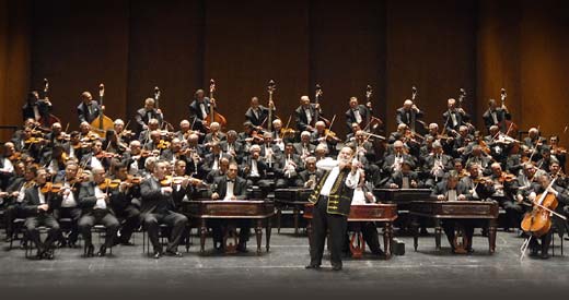 H μεγαλύτερη τσιγγάνικη συμφωνική ορχήστρα του κόσμου με 54 βιολιά, 10 βιόλες, 10 τσέλα, 10 κοντραμπάσα, 10 κλαρινέτα, 6 κύμβαλα και 100 απίθανους δεξιοτέχνες μας συστήνει την ψυχή του τσιγγάνικου λαού, το εκρηκτικό ταμπεραμέντο και την πηγαία ενέργειά της.