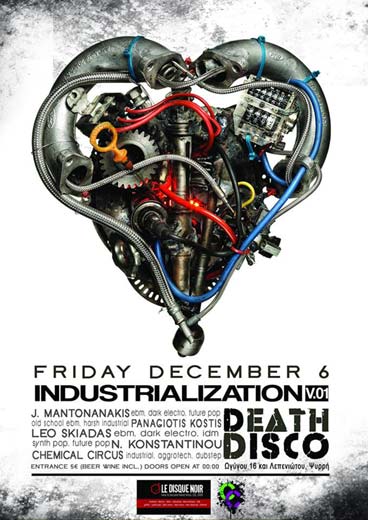 To 1o Industrialization party του DeathDisco, με electro και industrial μουσικές θα πραγματοποιηθεί το βράδυ της Παρασκευής 6 Δεκεμβρίου 2013.
