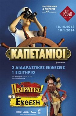 Από την Παρασκευή 18 Οκτωβρίου και για τρείς μήνες, στον 1.000 τ.μ. εκθεσιακό χώρο, οι «Καπετάνιοι» και οι «Πειρατές», ξεδιπλώνουν τα μυστικά της θάλασσας και με την βοήθεια των πιο σύγχρονων τεχνολογιών δίνουν ενεργό και δημιουργικό ρόλο σε μικρούς και μεγάλους. Από την εκμάθηση των κανόνων ναυσιπλοΐας και την πλοήγηση ενός παγοθραυστικού, μέχρι τον μαγικό κόσμο του animation, οι δύο εκθέσεις συνδυάζουν την εκπαίδευση με την ψυχαγωγία και τη δημιουργικότητα.Η πρώτη έκθεση, «Καπετάνιοι» είναι μια παραγωγή του κορυφαίου Κέντρου Επιστημών της Φινλανδίας, «Heureka Science Center» και παρουσιάζεται, για πρώτη φορά στην Ελλάδα.