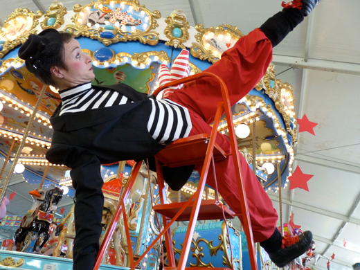 «miss Blink» – Circus Clown Η miss Blink – Γαλλίδα καλλιτέχνις τσίρκου – περιφέρεται πάνω κάτω σε μια ρόδα. Εντυπωσιάζει, ξαφνιάζει, ακροβατεί.
