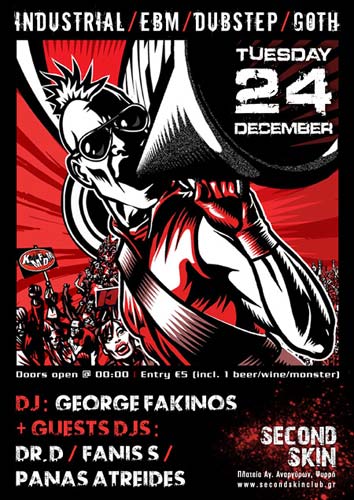 Ένα από αυτά είναι και το Second Skin Club το γνωστό στέκι του Ψυρρή που καλεί όλους τους φίλους του -και όχι μόνο- σε ένα party με βρώμικα industrial beat, EBM, dubstep και goth έως το πρωί.Έτσι, την παραμονή Χριστουγέννων (Τρίτη 24/12/2013), ο resident Dj του Second Skin Club Γιώργος Φακίνος, θα βρεθεί στα decks για να επιλέξει τις γνωστές, αγαπημένες μουσικές, παρέα με τους usual suspects Dr D, Panas Atreides και Fanis S.