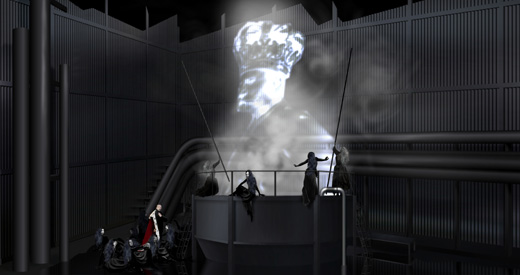 Τη σκηνοθεσία έχει αναλάβει ο διακεκριμένος Ιταλός σκηνοθέτης και θεωρητικός της όπερας Λορένζο Μαριάνι, ο οποίος μετά τις σπουδές του στο Χάρβαρντ σκηνοθέτησε σε αμερικάνικα θέατρα, έγραψε μελέτες πάνω στην όπερα, ενώ υπήρξε καλλιτεχνικός διευθυντής σε ένα από τα σημαντικότερα λυρικά θέατρα της Ιταλίας, στο Παλέρμο. Τα τελευταία χρόνια έχει συνεργαστεί με κορυφαία λυρικά θέατρα σε Ευρώπη και Αμερική, σε μεγάλες παραγωγές όπερας. Ο Μαριάνι εστιάζει στον τρόπο σκέψης των δύο ηρώων και εικονοποιεί την αντίδραση στο συναίσθημα του φόβου. Το σκηνικό αποδίδει ένα no man’s land – ένα τόπο στο πουθενά, μια «απεικόνιση» των σκοτεινών σημείων του μυαλού μας.
