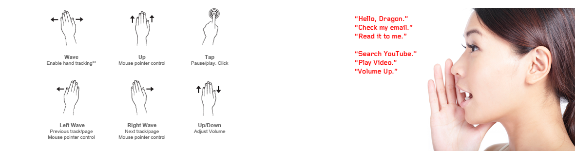 To νέο Thinkpad υποστηρίζει την αναγνώριση κάποιων κινήσεων με τα χέρια και κάποιες φωνητικές εντολές (στην αγγλική ή άλλη γλώσσα, όχι όμως στα ελληνικά) για την εκτέλεση μετρημένων στα δάχτυλα λειτουργιών. Με έναν χαιρετισμό, το Thinkpad αρχίζει να εντοπίζει την κίνηση του χεριού (hand tracking), με μια κίνηση προς τα αριστερά ή τα δεξιά προχωρά στο επόμενο ή το προηγούμενο τραγούδι ή σελίδα ή μετακινεί ανάλογα τον κέρσορα επί της οθόνης και με την κίνηση προς το πάνω ή προς τα κάτω αυξομειώνει την ένταση του ήχου ή οδηγεί τον κέρσορα και με ένα tap ξεκινά ή παύει η αναπαραγωγή πολυμέσων και γίνεται επιλογή. Η αναγνώριση φωνητικών εντολών μάλλον βασίζεται στο γνωστό λογισμικό Dragon της Nuance, αφού ο χρήστης πρέπει να απευθυνθεί στο λογισμικό λέγοντας «Hello, Dragon». Ορατές αλλαγές έχουν γίνει και στο Clickpad για την υποστήριξη λειτουργιών στα Windows 8.1 (δείτε Τι διορθώθηκε και τι δεν διορθώθηκε με την έλευση των Windows 8.1).