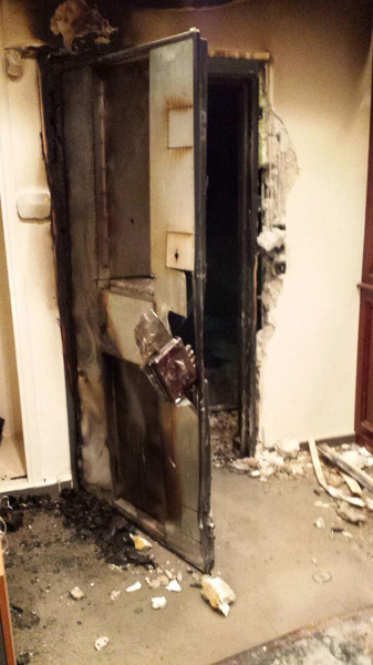 Οι δράστες τοποθέτησαν τον εμπρηστικό μηχανισμό στην είσοδο του γραφείου. Από την έκρηξη και την φωτιά που ακολούθησε προκλήθηκαν υλικές ζημιές.