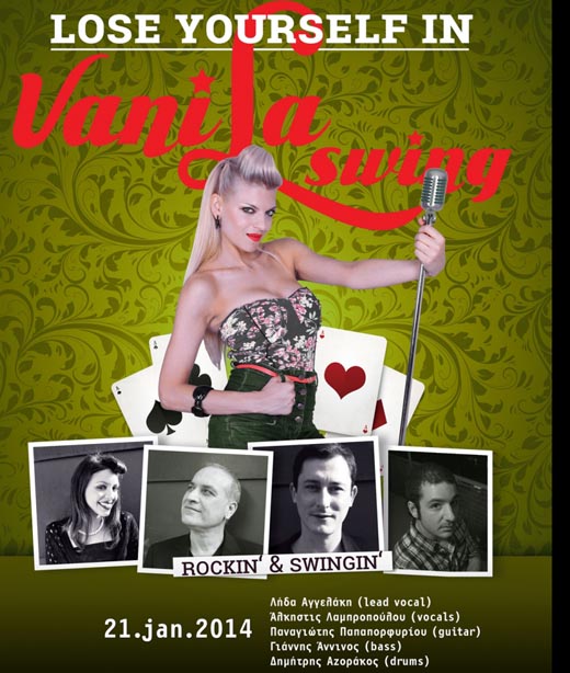 Οι Vanila Swing υπόσχονται πολλά για το 2014. Ανανεωμένοι και ακόμη πιο δυνατοί , προσφέρουν ένα άκρως χορευτικό live με πολύ κέφι και όρεξη , την Τρίτη 21 Ιανουαρίου στο Faust, και κινούνται στο χώρο του Swing και του Rock n Roll με αναφορές στο χθες και το σήμερα. Δημιουργήθηκαν το 2011 στην Αθήνα,ύστερα από […]