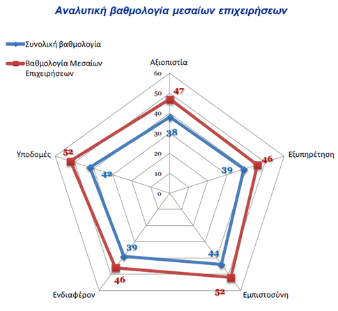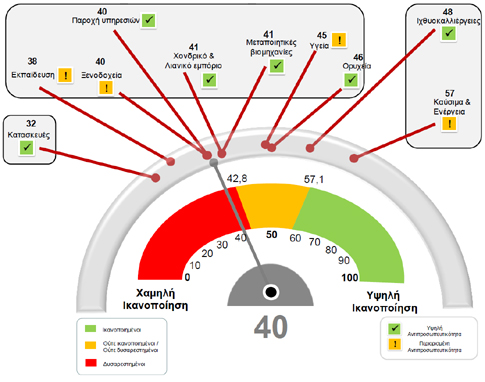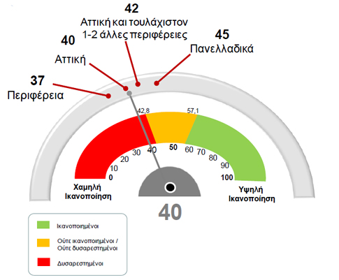 Ο συνολικός δείκτης ικανοποίησης είναι 40 με ανώτατο όριο του 100 βαθμούς.