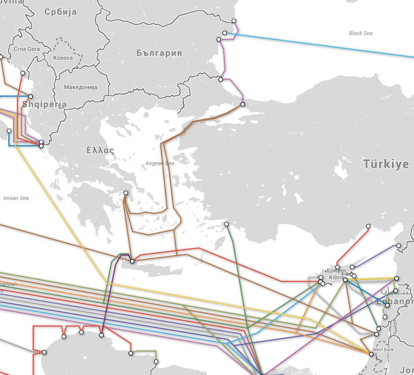 Δείτε στο submarinecablemap.com έναν χάρτη των υποθαλάσσιων καλωδίων και εστιάστε στην Ελλάδα.