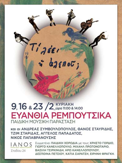 H Ευανθία Ρεμπούτσικα παρέα με αγαπημένους της μικρούς φίλους και 5 σολίστες μουσικούς παρουσιάζουν την παιδική συναυλία με τίτλο -από το ομώνυμο CD- «Τι λέει η αλεπού;» Η δουλειά αυτή είναι εμπνευσμένη από τους Μύθους του Αισώπου και την μουσική υπογράφει η Ευανθία Ρεμπούτσικα, ενώ τους στίχους η Ελένη Ζιώγα. Μέσα από την μουσική και […]