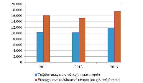 Tην περίοδο Ιανουαρίου – Νοεμβρίου 2013 σημειώνεται αύξηση κατά 14,9% στις ταξιδιωτικές εισπράξεις και αύξηση κατά 15,3% της εισερχόμενης ταξιδιωτικής κίνησης, σε σύγκριση με την αντίστοιχη περίοδο του 2012.