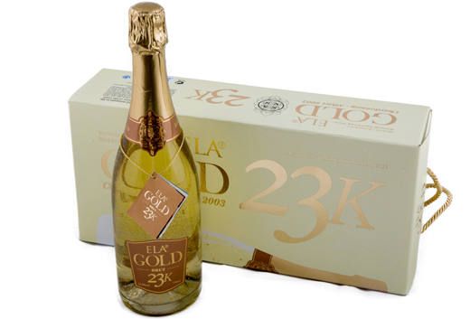 Ένας πολυτελής φυσικός αφρώδης οίνος εκλεκτής ποιότητας με νιφάδες βρώσιμου χρυσού 23 καρατίων, που αποτελείται από σταφύλια των ποικιλιών Chardonnay και Αθήρι εσοδείας 2003, ειδικά επιλεγμένα από αμπελώνες της Ρόδου. Η παραδοσιακή γαλλική μέθοδος παραγωγής σαμπάνιας, με τη διαδικασία της ωρίμανσης και της δεύτερης ζύμωσης στη φιάλη, δίνει στο ELA GOLD μια εξαιρετικά λεπτή και ιδιαίτερη γεύση. Απολαύστε το φρουτώδες άρωμα βερίκοκου και φρεσκοψημένου μπριός που αναδύουν οι πλούσιες φυσαλίδες του, συνοδεύοντας το ιδανικά με τα ορεκτικά, την παρμεζάνα, τα λευκά τυριά και -γιατί όχι- το κυρίως γεύμα σας.