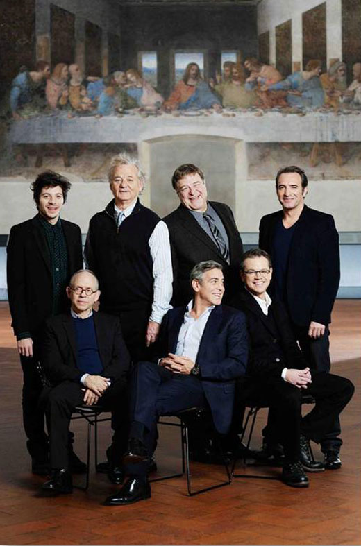 Στις 10 Φεβρουαρίου, στο Μιλάνο, ο Τζορτζ Κλούνι, είχε μαζί του τους πρωταγωνιστές του, Ματ Ντέιμον, Μπιλ Μάρει, Ζαν Ντιζαρντέν, Μπομπ Μπάλαμπαν, Τζον Γκούντμαν, Ντιμίτρι Λιονάιντας, τον συνσεναριογράφο του Γκραντ Χέσλοβ, τον συγγραφέα του βιβλίου πάνω στο οποίο βασίστηκε η ταινία «Μνημείων Άνδρες», Ρόμπερτ Έντσελ, και τον Χάρι Έτινγκερ, ο οποίος πάλεψε ως αληθινός «Monuments Man» ενάντια στους Ναζί, προκειμένου να διηγηθούν όλοι μαζί στο Ιταλικό κοινό τα κατορθώματα της ιστορικής διμοιρίας ηρώων της τέχνης!