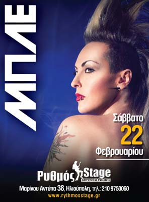 Ένα σχήμα ιδιαίτερο και αγαπητό στο κοινό, που μετρά δεκαετίες στο ελληνικό μουσικό στερέωμα, πραγματοποιεί ένα μοναδικό live στο «Ρυθμό Stage» το Σάββατο 22/02/2014. Οι Μπλε μετρούν πάνω από 15 χρόνια παρουσίας στην ελληνική μουσική σκηνή, ξεχωρίζοντας με τον ιδιαίτερο ήχο τους, τη σκηνική τους παρουσία και τις ιδιαίτερες φωνές των ερμηνευτριών τους. Επιτυχημένες συναυλίες, […]