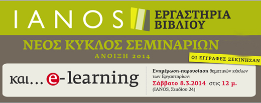 Το Σάββατο, 8 Μαρτίου, στις 12 μ., στο βιβλιοπωλείο IANOS (Σταδίου 24) οι διδάσκοντες παρουσιάζουν τις θεματικές ενότητες του νέου κύκλου σεμιναρίων (άνοιξη 2014).