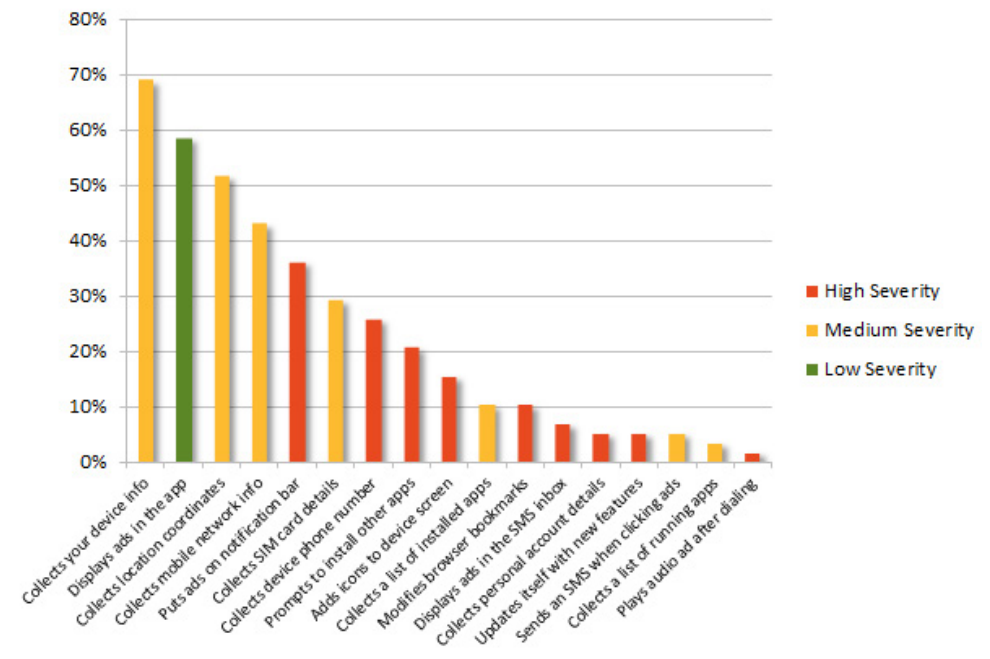 Η Symantec παραπέμπει σε μελέτη σύμφωνα με την οποία τουλάχιστον τα μισά από τα 65 γνωστά ad libraries κατατάσσονται ως madware και μάλιστα συμπεραίνει ότι το ποσοστό των app που τα χρησιμοποιούν αυξάνεται. Στο Play Store των smartphone με Google Android, το ποσοστό αυτό από 5% το 2010 έχει ανέλθει στο 23%.