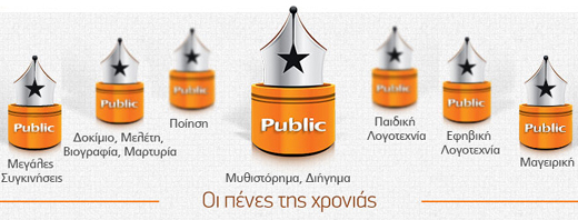 Τα καταστήματα Public διοργανώνουν για πρώτη φορά τα «Βραβεία Βιβλίου Public 2014» με σκοπό να δώσουν τη δυνατότητα στους αναγνώστες να ψηφίσουν και να αναδείξουν τα αγαπημένα τους βιβλία για την χρονιά που πέρασε (2013).