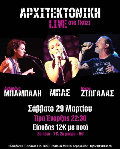 Ο Νίκος Ζιώγαλας, η Ανδριάνα Μπάμπαλη και το συγκρότημα των Μπλε ανεβαίνουν ξανά στη σκηνή της Αρχιτεκτονικής για μια συναυλία.