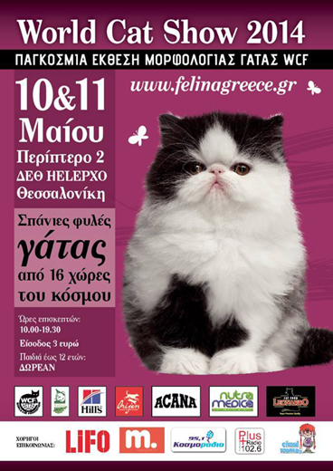 Το World Cat Show 2014 αποτελεί έναν διεθνή θεσμό που τιμά τις γάτες, προάγει την υπεύθυνη ιδιοκτησία κατοικίδιων, την ηθική εκτροφή και παράλληλα ενημερώνει και ψυχαγωγεί όλη την οικογένεια.