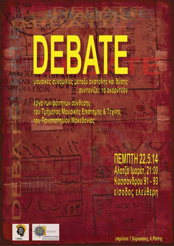 Στη συναυλία θα συμμετέχουν 8 συνθέτες και 10 μουσικοί, όλοι φοιτητές στο Τμήμα Μουσικής Επιστήμης και Τέχνης του Πανεπιστημίου Μακεδονίας, δίνοντας μια διαφορετική ανάγνωση του όρου debate, ενώ στο ερώτημα αν μουσικά ανήκουμε «εις την Δύσην» ή στην Ανατολή, απαντούν με οκτώ νέα ντουέτα για ακορντεόν και όργανα που προέρχονται κι από τις δύο παραδόσεις.