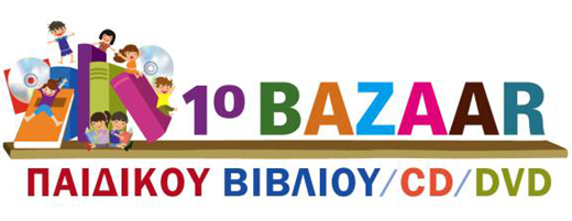 Στο 1ο Bazaar Παιδικού Βιβλίου/Cd/Dvd θα βρείτε πολλά παιδικά και εφηβικά βιβλία, cd και dvd σε μικρές τιμές. Συμμετέχουν οι εκδόσεις και οι εταιρείες παραγωγής: Αλφάβητο Ζωής, Δίαυλος, Διόπτρα, Εστία, Καστανιώτης, Λιβάνης, Μεταίχμιο, Μίνωας, Παιδική Χορωδία Σπύρου Λάμπρου, Πατάκης, Gema και Media Vista.