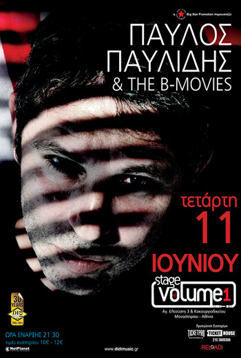 Ο χώρος του Stage Volume 1 το βράδυ της Τετάρτης, για ακόμα μια φορά θα γεμίσει με τους ήχους των τραγουδιών από όλη τη μουσική πορεία του Παύλου Παυλίδη όλα αυτά τα χρόνια, από την εποχή των Ξύλινων Σπαθιών έως και τις πιο πρόσφατες κυκλοφορίες του, ενώ οι B-movies με το δικό τους ιδιαίτερο τρόπο θα «ερμηνεύσουν» τα τραγούδια του Παύλου, δίνοντας έτσι την αίσθηση του «διαφορετικού» όπως και σε κάθε συναυλία τους.