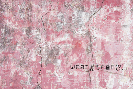 Η αγγλική έκφραση«wear and tear», η οποία χρησιμοποιείται ως επί το πλείστον κυριολεκτικά συνδέεται με ένα σαφώς πιο δύσκαμπτο και ντετερμινιστικό μοντέλο από εκείνο της σημειολογικής απόδοσης του ελληνικού όρου «φθορά», διότι αναφέρεται με σαφήνεια στη σταδιακή, αναμενόμενη αλλοίωση-υποβάθμιση της αρχικής ύλης λόγω χρήσης ή επίδρασης του χρόνου. Η προσθήκη ωστόσο του ερωτηματικού λειτουργεί ανατρεπτικά, επαναφέροντας παιγνιωδώς την ευρύτητα του αντίστοιχου ελληνικού όρου. Δεκατέσσερις καλλιτέχνες αναμετρούνται με την πολυσημία του όρου «φθορά» εξετάζοντας άλλοτε το απαύγασμα του θραύσματος, του υπολείμματος ή του ερειπίου και άλλοτε την μεταφορική, ανθρωποκεντρική ή ιστορική διάσταση της «αποσύνθεσης» και της «παρακμής». Μορφολογικά αφήνονται στην ελεύθερη επιλογή μεταξύ σκόπιμης αλλοίωσης και φυσιολογικής φθοράς λόγω χρήσης ή επιρροής των εξωτερικών συνθηκών.