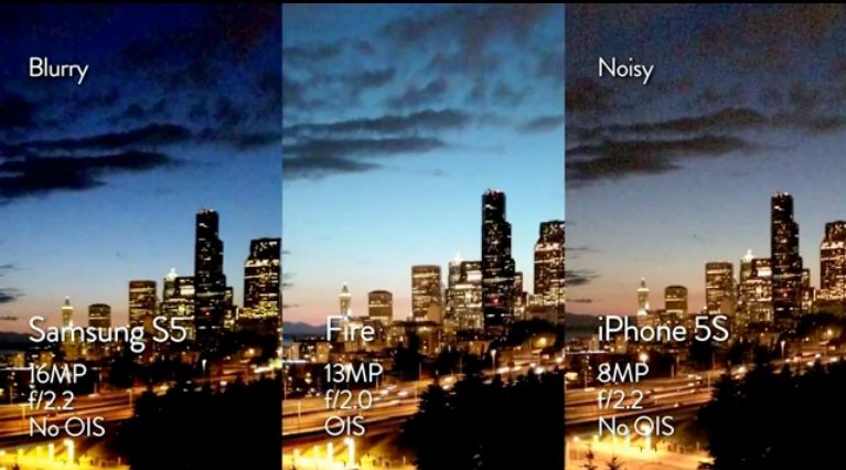 O Τζεφ Μπέζος επανέλαβε πολλές φορές ότι δεν ήθελε να σχεδιάσει ένα smartphone καλύτερο απ’τ’άλλα, αλλά το καλύτερο smartphone για τον πελάτη. Εντούτοις, δεν απέφυγε την αντιπαράθεση τουλάχιστον σε ό,τι αφορά τις δυνατότητες της κάμερας του Fire Phone.Ιδιαίτερη έμφαση έδωσε στον φακό (f 2.0) στον μηχανισμό σταθεροποίησης της λήψης, που αντιμετωπίζει αποτελεσματικά όπως υποστήριξε ο CEO το αναπόφευκτο τρεμούλιασμα των χεριών μας.