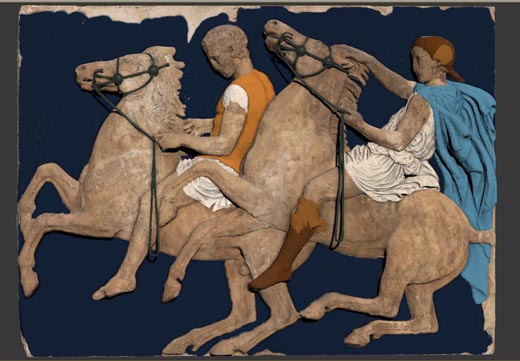 Δίνοντας έμφαση στο χρώμα, ο Δημήτρης Παντερμαλής, στη συνέντευξη Τύπου για τα πέντε χρόνια λειτουργίας του Μουσείου της Ακρόπολης, επισήμανε ότι βοηθά στην παρουσίαση περιγραμμάτων, και αναφερόμενος στη ζωοφόρο είπε: « είναι κάτι περισσότερο από μυθολογία». Εστίασε ακόμη στη σημασία του αλόγου και συγκεκριμένα στο βάδισμα και στον μετεωρισμό του, που «αναπαρίστανται ζωντανά».