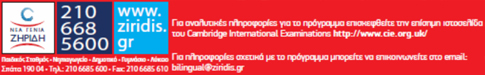 Το πρόγραμμα Ziridis Bilingual School, μετά την μεγάλη ανταπόκριση μαθητών και γονέων, επεκτείνεται και πλέον θα εφαρμόζεται στις τάξεις του Νηπιαγωγείου, από την Α’ έως και τη Στ’ του Δημοτικού (Cambridge Primary) και από την Α’ έως και τη Γ’ του Γυμνασίου (Cambridge Secondary), από τη σχολική χρονιά 2014-2015.