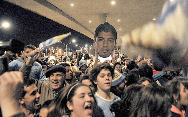 Όμως υπάρχει και η άλλη μεριά, στην οποία εντάσσονται αρχικά οι Ουρουγουανοί όπου φαίνεται να στηρίζουν τον παίκτη, αφού το βράδυ της Πέμπτης όταν και εκείνος επέστρεψε στην Ουρουγουάη, στο αεροδρόμιο ο κόσμος του είχε ετοιμάσει υποδοχή… ηρωα. Εκεί βρέθηκε ακόμα και ό πρόεδρος της Ουρουγουάης, Χοσέ Μούχικα.