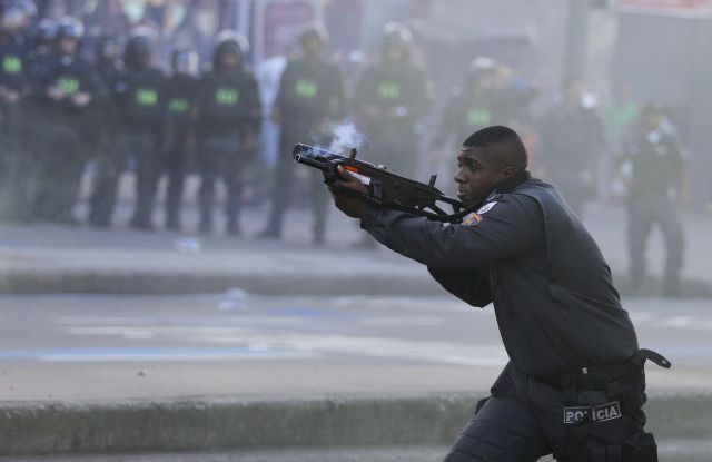 Μπορεί εντός του Μαρακανά να είδαμε μία λαμπρή γιορτή για τον τελικό του Μουντιάλ και να κυριάρχησαν τα φλας και τα βεγγαλικά, όμως, έξω από το γήπεδο και γενικότερα σε πολλούς κεντρικούς δρόμους του Ρίο, η αστυνομία χρειάστηκε να κάνει χρήση δακρυγόνων για να διαλύσει το πλήθος περίπου 300 ανθρώπων που διαδήλωναν εναντίον της διεξαγωγής του Παγκοσμίου Κυπέλλου.