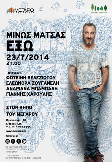 Ο συνθέτης Μίνως Μάτσας παρέα με την πιο όμορφη μουσική παρέα, θα βρεθεί στον Κήπο του Μεγάρου την Τετάρτη 23 Ιουλίου για μια συναυλία.