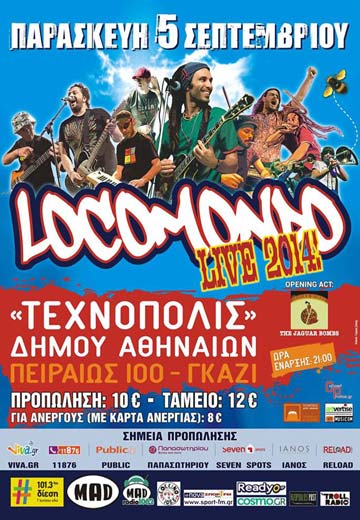 Μετά από μια δημιουργική χρονιά και αφού «όργωσαν» την Ελλάδα με συναυλίες-party, οι Locomondo κλείνουν την καλοκαιρινή τους σεζόν με μια πανηγυρική εμφάνιση στην Τεχνόπολις του Δήμου Αθηναίων.